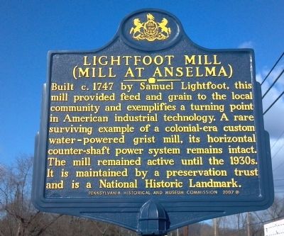 The Mill at Anselma is an   extraordinary artifact of 260 years of Chester County’s industrial heritage. The Mill   stands as the most intact, authentic example of a custom water-powered grain   mill in the United   States and has been so honored by the U.S.   Department of Interior as a National Historic Landmark.